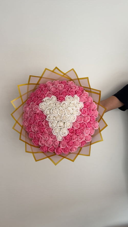 Buchet 51 trandafiri din sapun parfumati cu initiala si coronita 💗🤍
